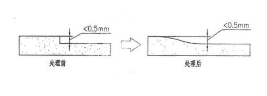階梯高度關如果超過 0.5mm 就必須磨平,棱角處必須光滑 。具體處理方法