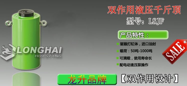 雙作用液壓千斤頂屬于龍海起重工具獨創品牌【龍升牌】,采用雙作用設計,液壓復位,內置式泄壓閥,防止突發性的超壓,烤漆表面,耐腐蝕能力強,裝有防塵圈減少污染,延長千斤頂使用壽命。