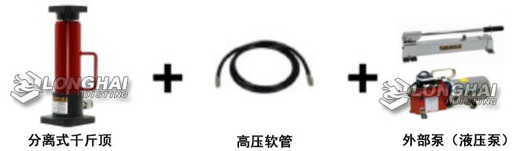 ▲JS型鷹牌分離式千斤頂工作壓力不超過70Mpa,可根據(jù)現(xiàn)場(chǎng)選擇配備手動(dòng)泵/電動(dòng)泵,如下圖所示: