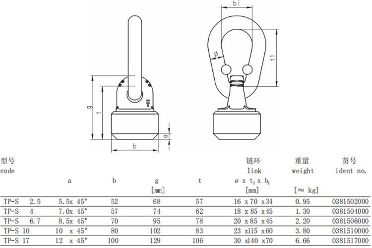 ▲TP-S型JDT旋轉吊環采用的10級標準的ENORM材料使其承載能力較之于上一代TAWGK系列產品在同等規格下提高了25%,吊點鏈環上的凸點可有效防止鏈環打結;