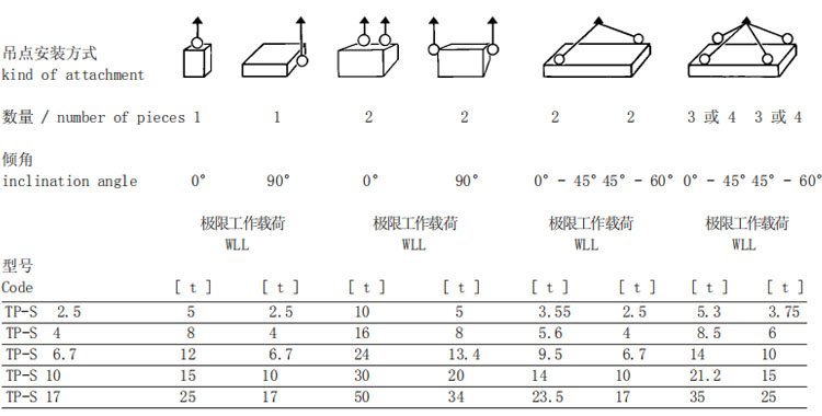 ▲TP-S型JDT旋轉吊點在所有受力方向下均有4倍安全系數