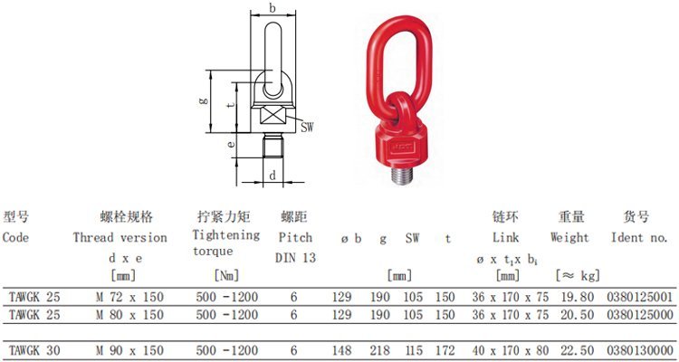 TAWGK型可旋轉吊點廣泛用于汽車制造業、風力發電行業、模具廠、機械廠等設備吊裝